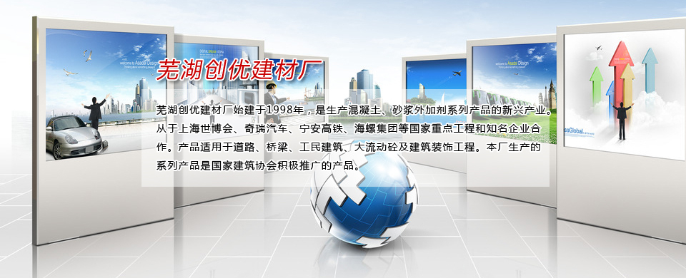 芜湖创优建材厂始建于1998年,是生产混凝土、砂浆外加剂系列产品的新兴产业。从于上海世博会、奇瑞汽车、宁安高铁、海螺集团等国家重点工程和知名企业合作。产品适用于道路、桥梁、工民建筑、大流动砼及建筑装饰工程。本厂生产的系列产品是国家建筑协会积极推广的产品。 本本厂拥有一批优秀的管理、设计和技术人员。技术力量雄厚,检测手续齐全。产品质量稳定、可靠。用户遍及全国各地。 服务宗旨:以质量为生命,以科技求发展,以优良的售后服务赢得的信誉。做的供货及时,送货上门。我们竭诚欢迎各界朋友来人来电洽谈。